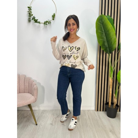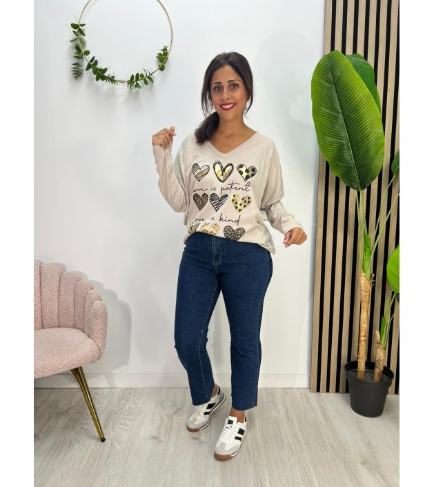 BLUSA MULTICORAZÓN BEIGE